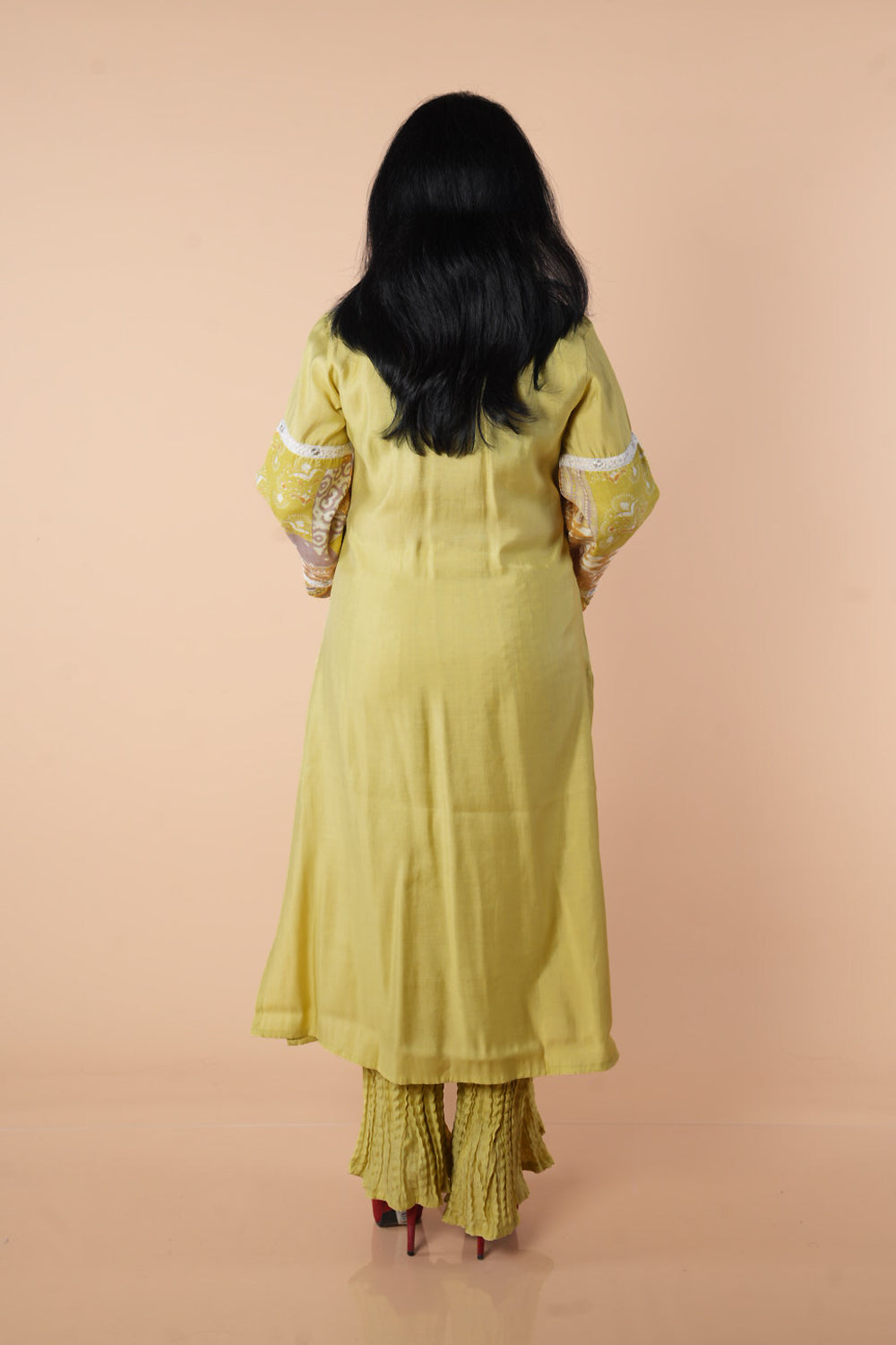 This Imported Maslin Fabric set features a unique cush pant paired with a kurti showcasing mirror detailing on the yoke and elegant Pakistani full sleeves. Crafted from breathable cotton, it offers comfort for both festive and casual occasions. The delicate floral print enhances its exclusive appeal, making it a distinctive addition to your wardrobe.